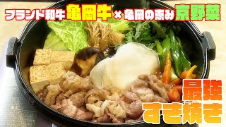 晩秋から初春にかけて濃い霧に包まれる「霧のまち」。京野菜の約7割を生産していて、霧によって育てられたみずみずしい野菜が絶品なんです!また、もうひとつの名産「亀岡牛」は通常より2か月~半年ほど長く飼育。からっとした艶のある油で、しつこさを感じないジューシーさなんです。ご賞味あれ!