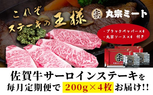 - 【定期便6回配送】\極上のご褒美肉!/佐賀牛サーロインステーキ 200g×4枚 全6回配送 計4,800g|A5・A4等級 厳選黒毛和牛 とろける霜降り 高級ステーキ 贈答 ギフト対応可 定期便 定期配送 国産牛 佐賀県鹿島市 送料無料 V-74