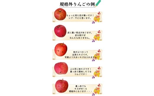 「規格外」は「訳あり」よりも一回り大きいキズのりんごです。