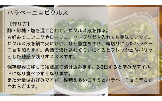 ピクルスやニンニクオイル漬けにして、バーガーやピザ、トースト、チャーハン、パスタ、