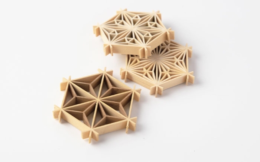 - 組子職人が作るコースター(麻の葉・二重麻の葉・八重麻)3枚セット / コースター 天然素材 セット インテリア / 恵那市 / 所建具店 [AUED002]