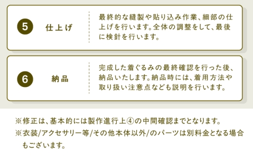 完成した着ぐるみの最終確認を行った後、納品いたします。納品時には、着用方法や取り扱い注意点などについても説明を行います。
