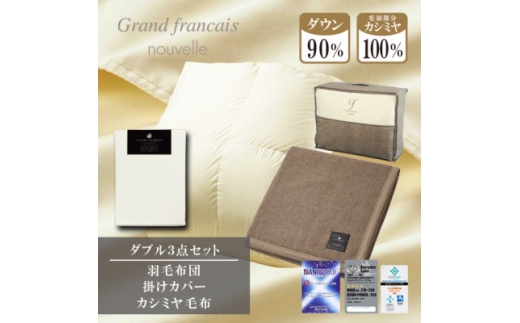 <ダブル>羽毛布団(掛カバー付) ハンガリー産ダウン90%&カシミヤ毛布<複数個口で配送>【4075177】