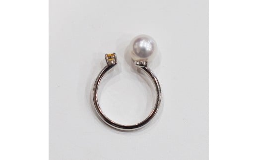 S085-476_あこや真珠 天草 リング 7.5mm - 8mm ホワイトピンク シトリン フリーサイズ 真珠 (G:14号)