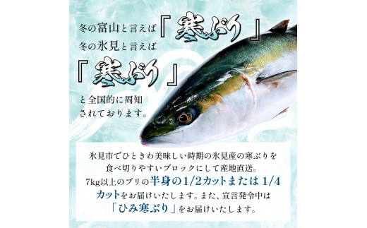 氷見産 天然寒ブリ 片身 1/4カット ブロック 釣屋魚問屋直営 ひみ岸壁市場