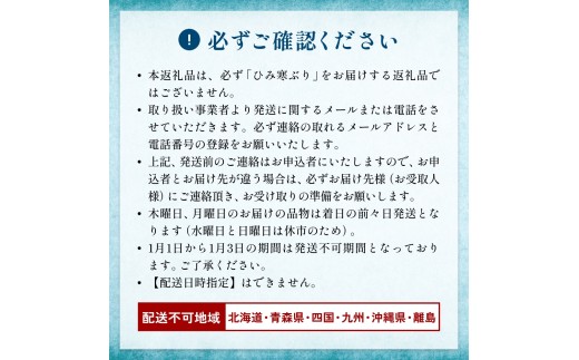 また、宣言発令中は「ひみ寒ぶり」をお届けいたします。