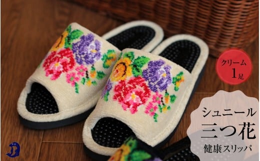 シュニール(シェニール)三つ花 健康スリッパ 1足【クリーム】