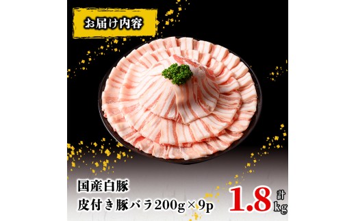 - 国産白豚皮付き豚バラ(200g×9P 計1.8kg) 国産 豚 豚肉 肉 白豚 バラ 豚バラ 皮 皮付き お鍋 しゃぶしゃぶ 冷しゃぶ 小分け 冷凍 珍味 炒め物 a5-335
