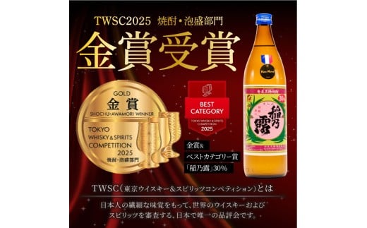 この度、日本唯一、アジア最大級の蒸留酒コンペティション「東京ウイスキー&スピリッツコンペティション(TWSC)) 」2025・【焼酎・泡盛部門】にて「稲乃露」30%が【金賞】を受賞いたしました。