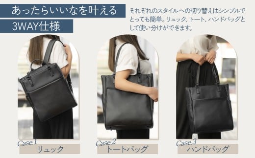 リュック、ショルダー、ハンドバッグとして、シーンに合わせてスタイルを切り替えられます。