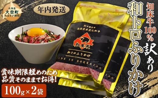 - 【訳あり】【12/15までのご入金で年内発送】知床牛和トロふりかけ100g×2袋 【 ふるさと納税 人気 おすすめ ランキング 牛肉 ふりかけ ご飯 おにぎり 弁当 おかず ご飯のおとも 北海道 大空町 送料無料 】 OSG003-w