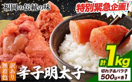 ☆緊急特別規格☆選べる 明太子 訳あり 大容量 辛子明太子 めんたいこ 1kg ハーフセット 小分け 《1-5営業日以内に出荷予定(土日祝除く)》 mentaiko ほぐし 切子 バラコ 切り子 福岡特産 明太子 1袋 各500g 福岡県 鞍手町