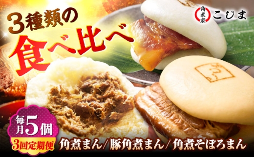 - 【月替わり3回定期便】角煮まん5個&長崎県産豚角煮まん5個&角煮そぼろまん5個 五島市/角煮家こじま [PGX081]