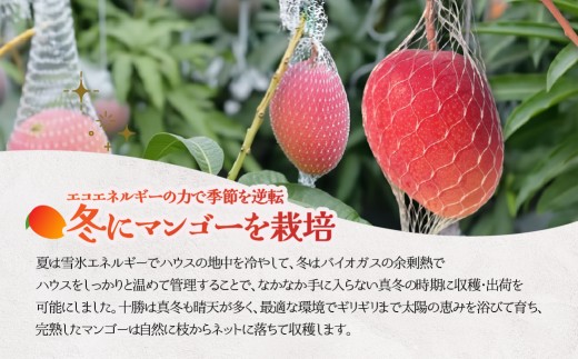 十勝の太陽をたっぷり浴びた「しかおいのマンゴー」は、エコエネルギーの力で季節を逆転して栽培しています。