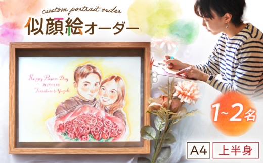心温まる一枚をお届け オーダーメイド似顔絵(A4・1~2名様・上半身) / 手描き 似顔絵 誕生日 記念日 ギフト / 御嵩町 / M.似顔絵とアート [AVBR001]