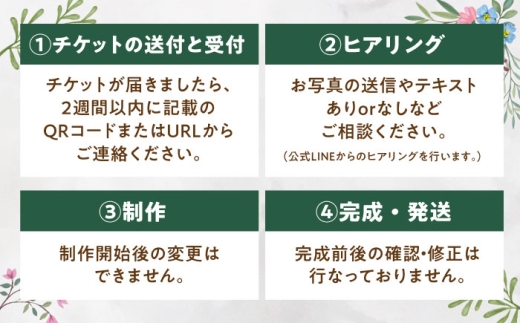 (一枚一枚手書きのため一気に仕上げます。完成前後の確認・修正は行なっておりません。届くのをお待ちいただけると幸いです。)