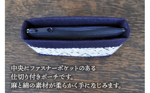 ポーチ こぎん刺し 伝統工芸 刺繍 素朴 繊細 美しい 麻 綿 小物入れ 手になじむ 仕切り付き