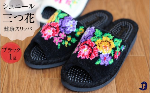 - シュニール(シェニール)三つ花 健康スリッパ 1足【ブラック】