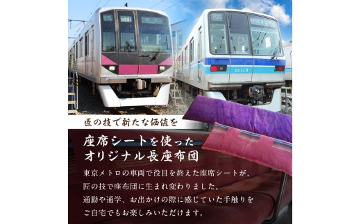 江東区を走る東西線と半蔵門線。その車両座席シート張替え時に廃棄されるはずだったシート生地を、熟練の職人技で新たな座布団カバーとして生まれ変わらせました。