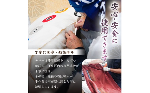 丁寧に洗浄された生地を、江東区内の専門業者が座布団カバーに仕立てています。