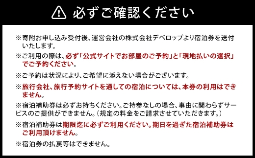 ※寄附お申し込み受付後、運営会社の株式会社デベロップより宿泊補助券を送付いたします。