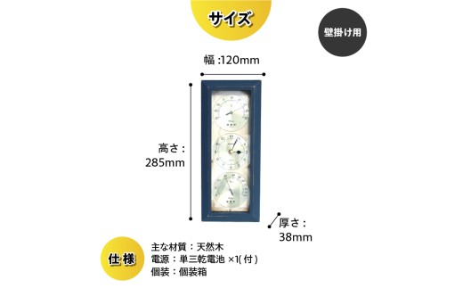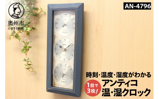 アンティコ温・湿クロック AN-4796 ブルー 温湿度計 時計 感染症対策 健康管理 インテリア シンプル 壁掛け用 電池式 [AJ140]
