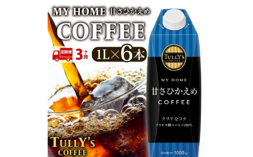 【定期便3回】 屋根型キャップ付き紙タリーズマイホーム微糖 1L×6本 飲料 飲み物 タリーズコーヒー タリーズ マイホーム 微糖 コーヒー TULLY’S COFFEE MY HOME BLACK COFFEE 日常 送料無料 伊藤園 キャップ付き コーヒー豆 防災 備蓄 飲料 飲み物 定番 人気 おすすめ 保管 ドリンク ケース カフェイン カフェ お中元 ギフト 贈答 静岡県 牧之原