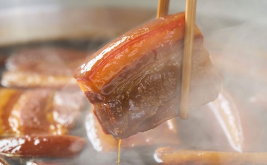 厳選した豚肉の下茹でを繰り返し、灰汁と余分な脂分を落とし、秘伝のたれをさらにじっくり煮込み、 最高のバランスとなった角煮をキャベツ・玉ねぎ・椎茸と合せ、豚まんの餡を仕込みます。