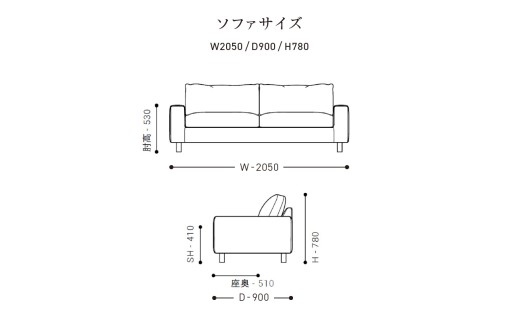 福岡県久留米市の工場で製造しているノストスソファは、サイズ幅205cm(3名掛け)のベーシックなフォルムが特徴です。