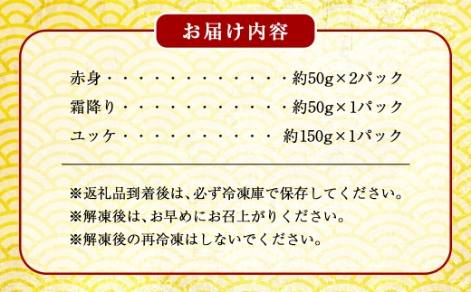 - 国産熊本馬刺し ユッケ、霜降り、赤身セット 計約300g 馬肉 刺身 グルメ 生食 旨味 食べ比べ 冷凍 馬刺し お肉 肉 にく ニク 馬 おつまみ 国産 熊本県産 濃厚
