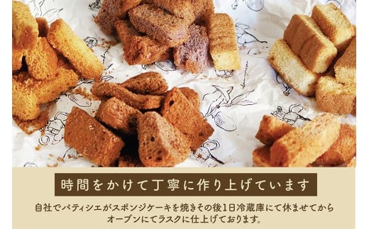 サクフワで軽い口どけの新食感ラスク。普通のラスクと比べて、ほろっとした食感なのでお子様からお年寄りの方まで幅広い世代で楽しめるおやつです。