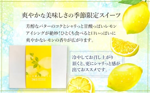芳醇なバターのコクとシャリっと甘酸っぱいレモンアイシングが絶妙!ひとくち食べると口いっぱいに爽やかなレモンの香りが広がります。冷やしてもおいしい季節限定スイーツです。