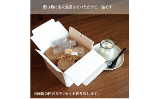 このプリンの美味しさを完成させるのは、お客様ご自身です。商品には、カリッと香ばしい「そばの実」を別添えでお付けしています。食べる直前に、パラパラとプリンの上に振りかけてみてください。なめらかなプリンの食感に、「カリッ」「ポリッ」とした小気味よいアクセントが加わり、噛むたびに蕎麦の香ばしさが弾けます。