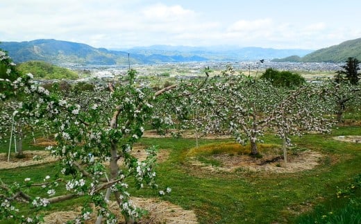 スイートな「ゴールデン・デリシャス」とほどよく酸味ある「千秋」を交配し近年に品種登録された新しいりんごです。比較的大玉で存在感があり、甘味・酸味・香り・果汁のバランスが非常に良いりんごです。早生品種と中生品種の間に収穫されるため、夏から秋への橋渡しリンゴとも呼ばれています。