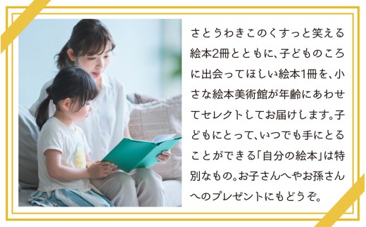 さとうわきこのくすっと笑える絵本2冊とともに、子どものころに出会ってほしい絵本1冊を、小さな絵本美術館が年齢にあわせてセレクトしてお届けします。