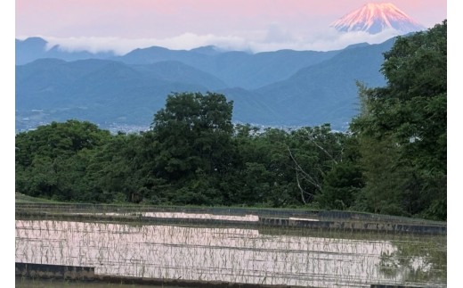 山梨県南アルプス市平岡地区の棚田で栽培期間中農薬・化学肥料不使用で環境に配慮したお米です。