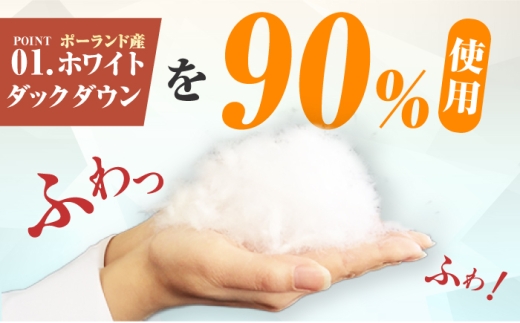 吸湿性・放湿性に優れた羽毛の特性を活かし、蒸れにくく、軽量でありながらも暖かくお使いいただけるのが特徴です。