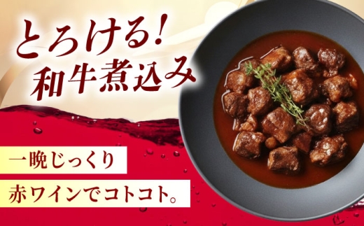 厳選された国産黒毛和牛を使用したハンバーグの中から、とろけるように柔らかく煮込まれた和牛の赤ワイン煮込みが現れます。