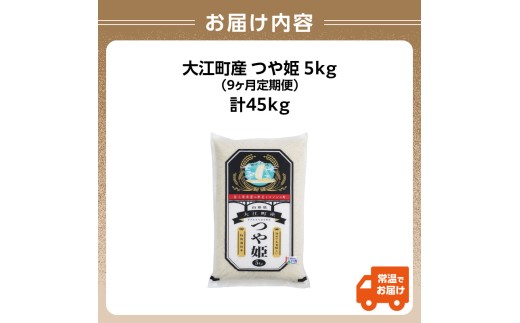 - 【新米】《9ヶ月定期便》大江町産 つや姫 5kg×9ヶ月(計45kg)【山形県産 特別栽培米】【2025年度産米】 【001-T31】