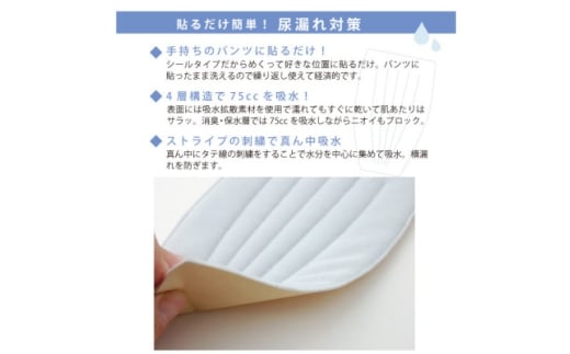 お手持ちのパンツにペタッと貼るだけで、手軽に尿漏れ対策ができます。