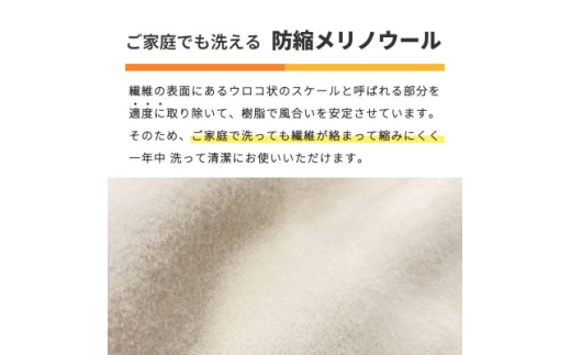 寒い日はウールの吸湿発熱性と保温力で暖かく眠れます。また、防縮ウールを使用しているため、家庭洗濯が可能です。