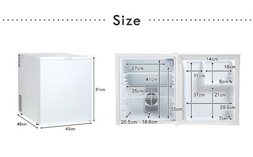 - 1ドア冷蔵庫 右開き 冷蔵庫 小型 霜取り不要 静音 48L 一人暮らし 低振動 ペルチェ式 省エネ 小型冷蔵庫 サブ冷蔵庫 ミニ冷蔵庫 セカンド冷蔵庫 コンパクト おしゃれ 新生活 ひとり暮らし SunRuck SR-R4805W シルバー