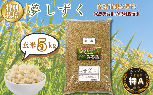 【新米】令和7年産 特別栽培 夢しずく 玄米 5kg 佐賀市 東与賀町産:B195-011