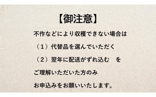 令和7年10月中旬頃から受付順に発送いたします。 ※生育状況により発送時期は前後する場合がございますので、予めご了承ください。 |