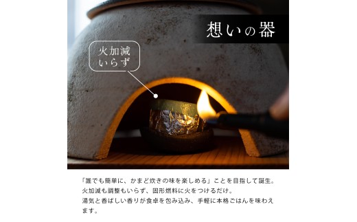 そんな日常の小さな願いから生まれたのが、職人の手で丁寧に仕上げられた“かまどはん”です。白米を研いで水を入れ、固形燃料に火をつければ、あとは待つだけ。