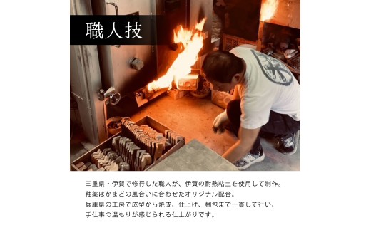 本品は、伊賀焼の産地として知られる三重県・伊賀で技術を磨いた職人が、耐熱性に優れた伊賀の粘土を用いて製作しています。