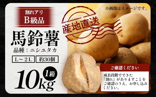 【先行予約】【B級品】(割れ) じゃがいも 馬鈴薯 (バレイショ) ≪2L~L≫ 約10㎏×1箱 /品種ニシユタカ (約30個) ≪2026年3月20日頃より順次発送≫ CS-2 | 家庭用 南大隅町産 産地直送 旬 ポテト ジャガイモ ばれいしょ 新じゃが 春じゃが 春作 国産 鹿児島県 南大隅町 地域商社推進機構