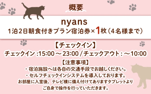 nyans 1泊2日朝食付きプラン 宿泊券×1枚 (4名様まで) |