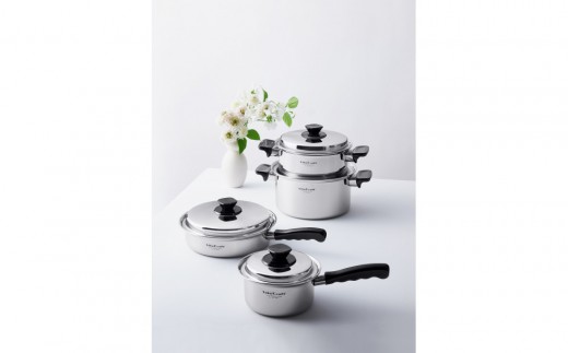 ステンレスとアルミニウムの全面5層構造で「熱しやすく、冷めにくい」理想的な熱効率を実現。素材の栄養をまるごと摂れる無水調理や、余分な油は使わない無油調理で、野菜は甘くて色鮮やかに、お肉は柔らかくジューシーに仕上がります。焼き物や炒め物はもちろん、浅型の片手鍋として、無水調理や煮魚にも使えます。安心の10年間長期保証付き。