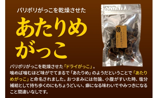 そしてそのパリポリがっこを乾燥させた「ドライがっこ」を作ってみました。噛めば噛むほど味がでてまるで「あたりめ」のようだということで「あたりめがっこ」と命名。